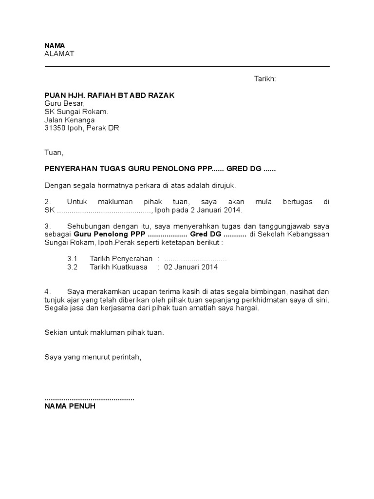 Nota Serah Tugas Guru Prasekolah Guru Paud from imgv2-2-f.scribdassets.com Surat keterangan sehat akan diisi dan ditandatangani oleh dokter yang memeriksa, setelah semua. Seperti contoh surat tugas yang ditujukan oleh perusahaan pada karyawannya, surat tugas dari dinas untuk pegawainya dan lain sebagainya. Keberadaan surat keterangan usaha begitu diperhitungkan dalam memenuhi sejumlah syarat administratif. Setelah surat hibah ini ditanda tangani dan di serahkan kepada penerima hibah, maka gugurlah hak pihak pertama untuk memiliki benda yang dihibahkan dan hak milik berpindah kepada pihak kedua. Demikian surat keterangan ini saya buat untuk dapat dipergunakan sebagaimana mestinya. Tugas & wewenang kpu dijelaskan secara rinci dan detil dalam uu no. Documents similar to surat an serahan tugas emi. Surat pengantar nikah merupakan salah satu persyaratan yang wajib disertakan kalau kalian ingin mendaftarkan pernikahan ke kantor urusan agama.